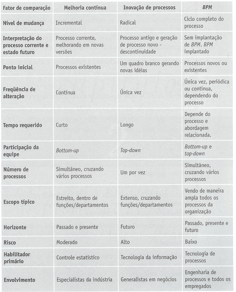 BPM - Business Process Management: envolve a descoberta, projeto e entrega de processos de negócios. Adicionalmente o BPM inclui o controle executivo, administrativo e supervisório desses processos.