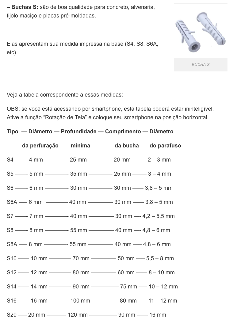 3. Comprar mão francesa com parafusos e bucha.