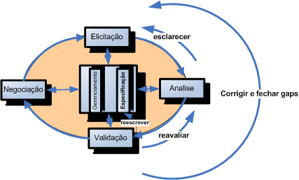 Processo de elaboração de requisitos de sistema: .2 Análise. Entenda os requisitos, suas sobrecargas, e seus conflitos. .3 Validação. Volte para os interessados no sistema e cheque se os requisitos são o que eles realmente tem necessidade. .4 .Negociação. Inevitavelmente, visões dos interessados diferirão, e o que propuseram para requisitos podem estar em conflito. Tente reconciliar visões contraditórias e gerar um conjunto consistente de requisitos. .5 Especificação. Documentação contendo os requisitos de modo que os interessados de software possam entender. (patrocinadores e desenvolvedores) .6 Gerenciamento. Controle as mudanças de requisitos que inevitavelmente surgirão |