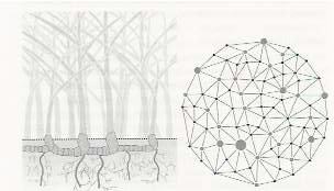 • Rizomas - Forma de organização descentralizada, desprovida de centro. Suas entidades podem até mesmo variar de importancia, mas isso não é determinado permanentemente ou sequer depende de sua posição no diagrama. É quase impossivel desmontar, desagregar ou destruir um rizoma, seus fluxos são distribuidos, e se re-articulam de acordo com anecessidade.