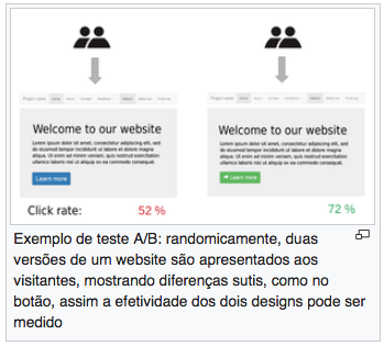 É um método de teste de design através do qual comparam-se elementos aleatórios com duas variantes, A e B, em que estes são o controle e o tratamento de uma experiência controlada, com o objetivo de melhorar a percentagem de aprovação.