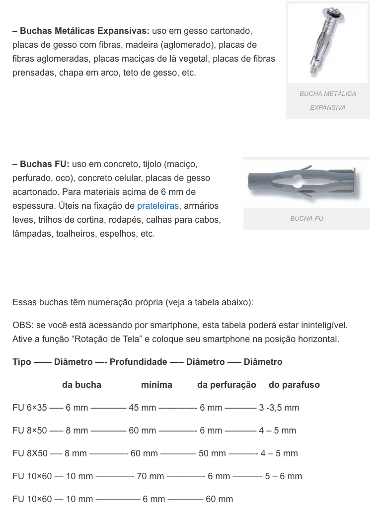 3. Comprar mão francesa com parafusos e bucha.