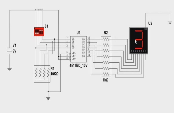Tornar um número visivel convertendo sinais elétricos codificado no sistema binário (0- sem sinal 1- com sinal) em uma imagem display digital de 7 segmentos (led) e um dígito.