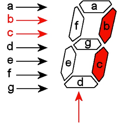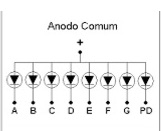 Cada segmento corresponde a um diodo que são polarizados pelo anodo. Pino 3 é positivo (+)