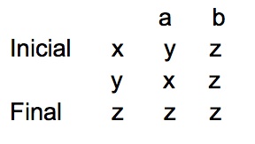 Seja o alfabeto {a b} as regras de transição são: