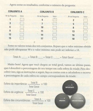 `Acorde de 3 sons: familia (familia, equipe, grupo), trabalho e vida. Indicadores (critério): importancia, urgência e circunstância`
