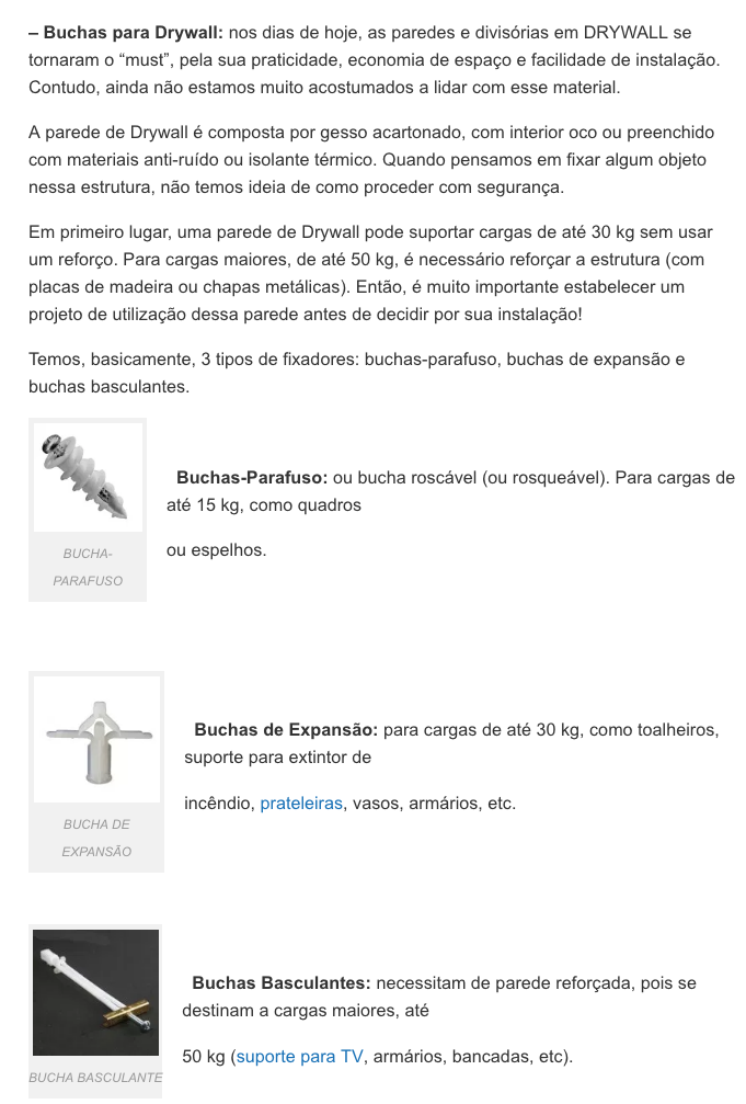 3. Comprar mão francesa com parafusos e bucha.