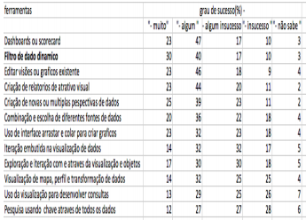 O quão bem sucedido você e usuários estão na sua organização com a habilidade de usar ferramentas para interagir visualmente com dados ?